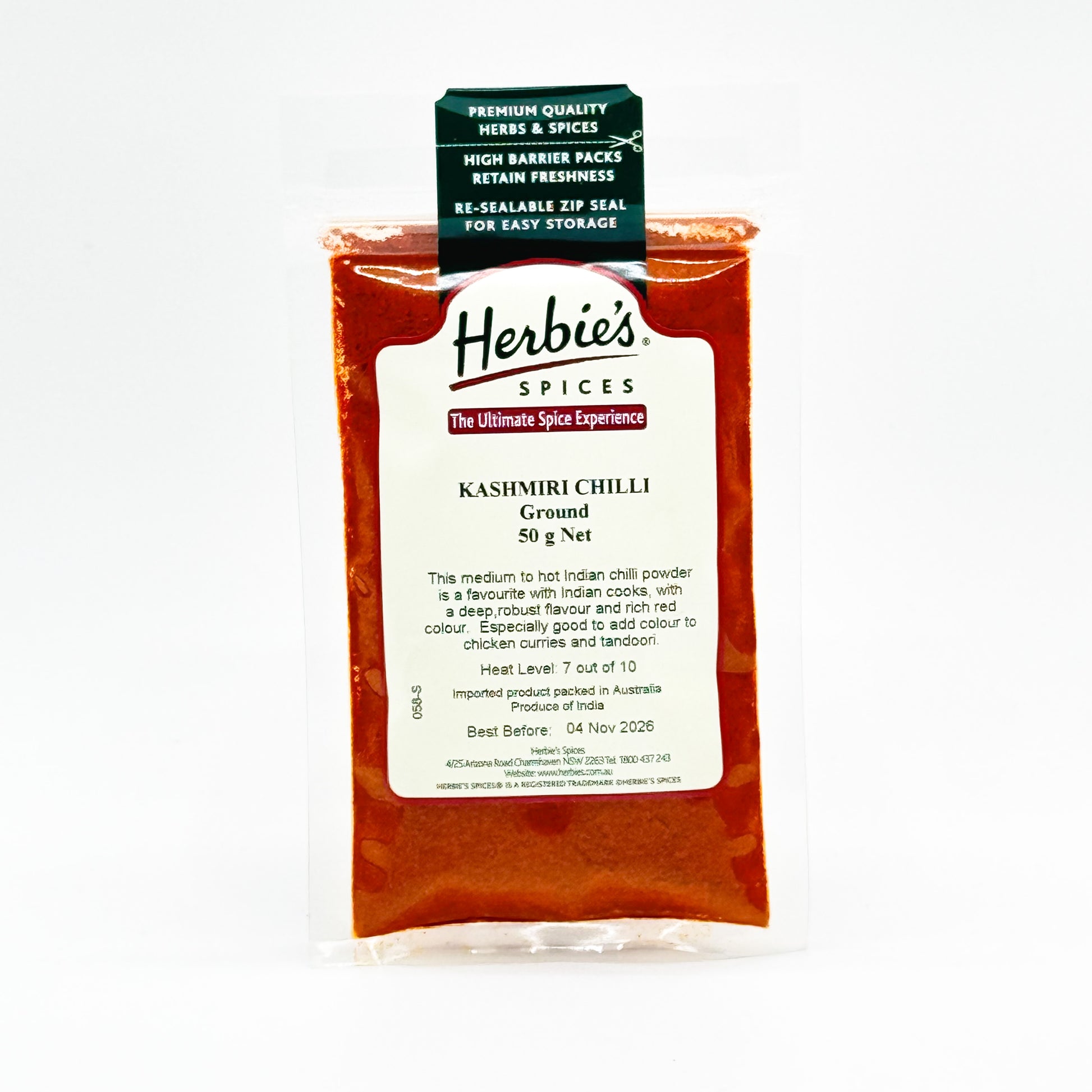 Kashmiri Chilli Powder does not necessarily come from Kashmir, however it is a popular Indian chilli with a very high colour content, and sweet, fragrant aroma. This chilli powder makes the food it is used in quite red, hence being popular in Tandoori and Butter Chicken recipes.