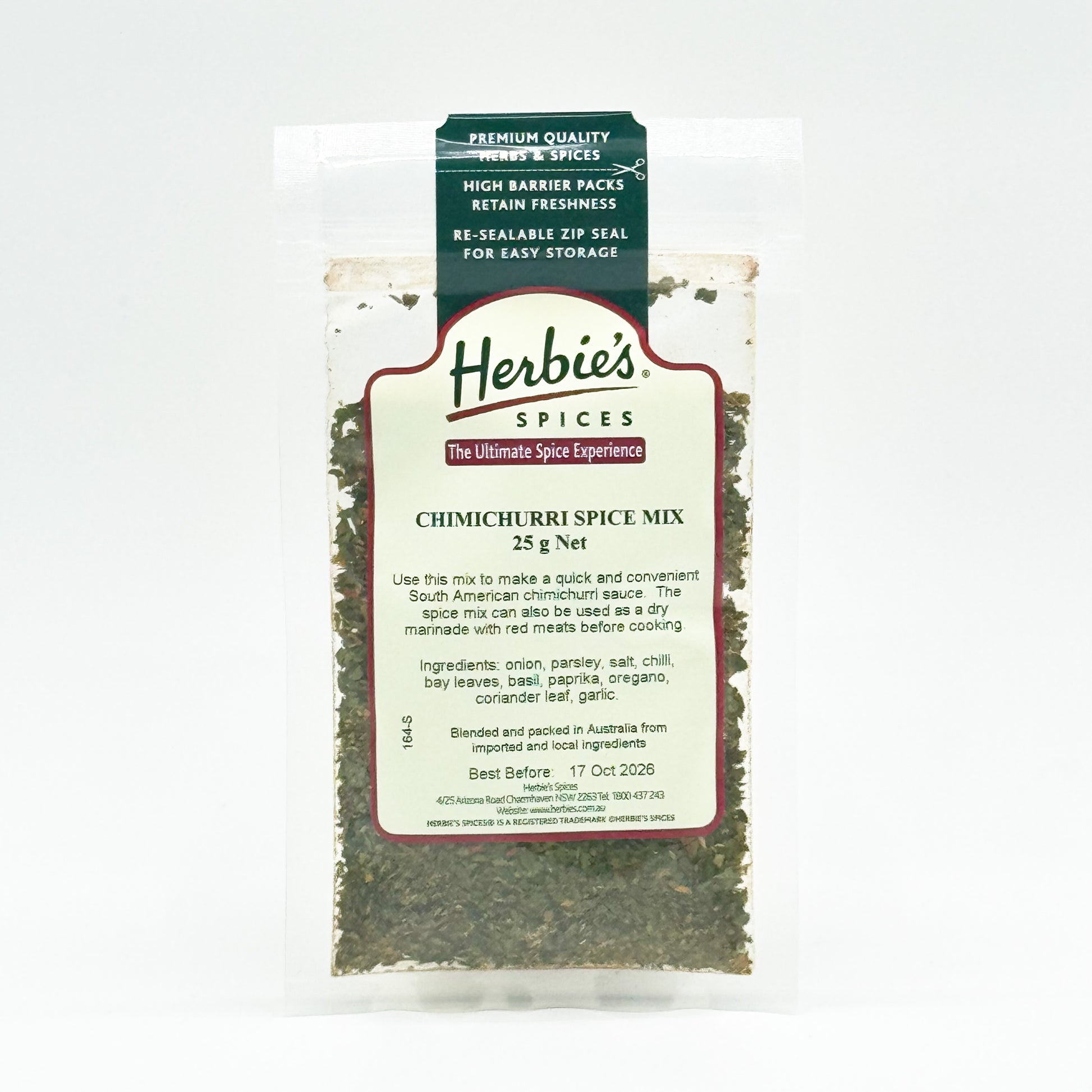 Use this mix to make a quick and convenient South American Chimichurri sauce. The spice mix can also be used as a dry marinade with red meats before cooking. Blended and packed in Australia from imported and local ingredients.