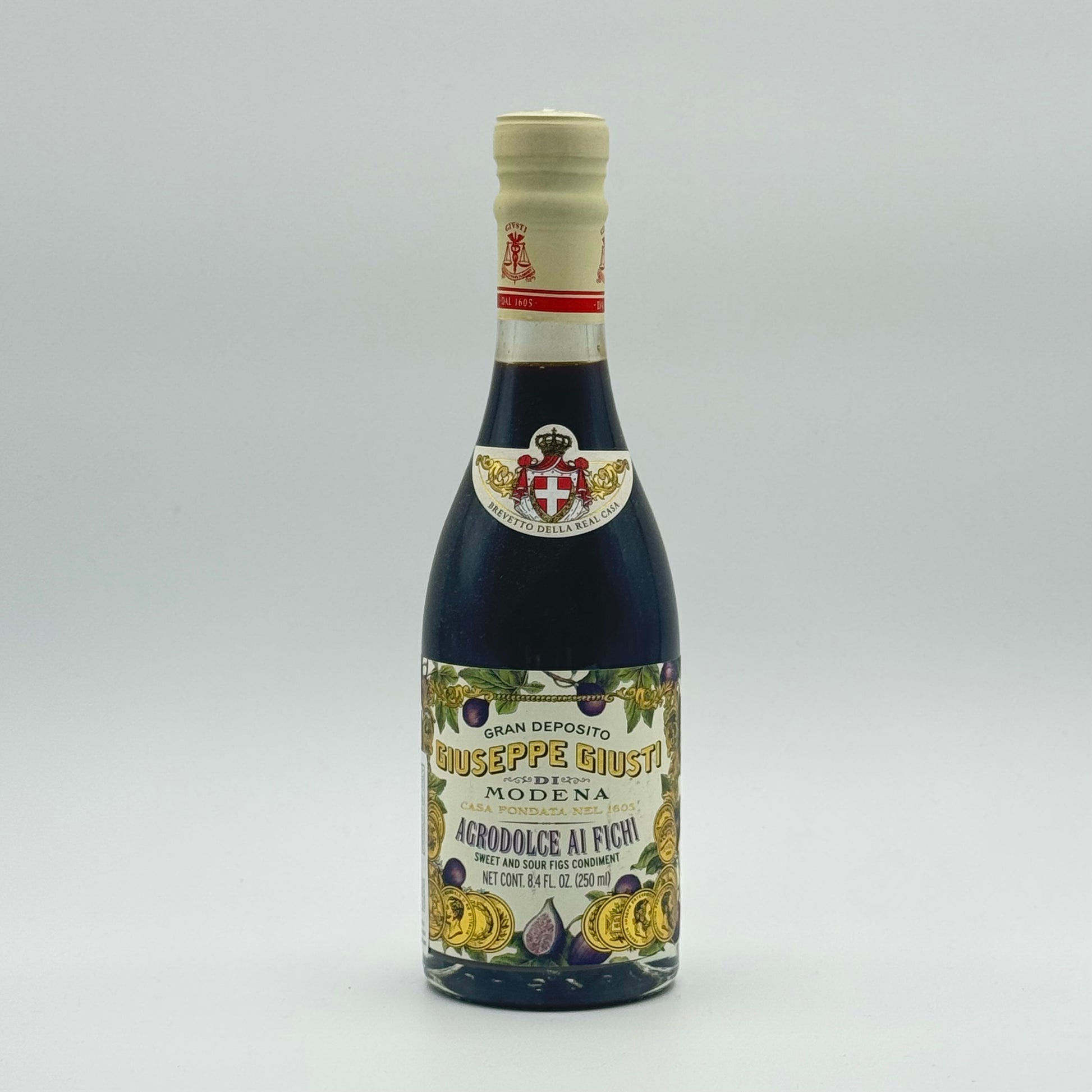 Giusti's Condiment with Fig is mellow and sweet. It is obtained from the Balsamic Vinegar of Modena '3 Gold Medals' and fig purŽe, infused together over a 6 month period in oak casks. The sweetness of the fig complements the sourness of balsamic.